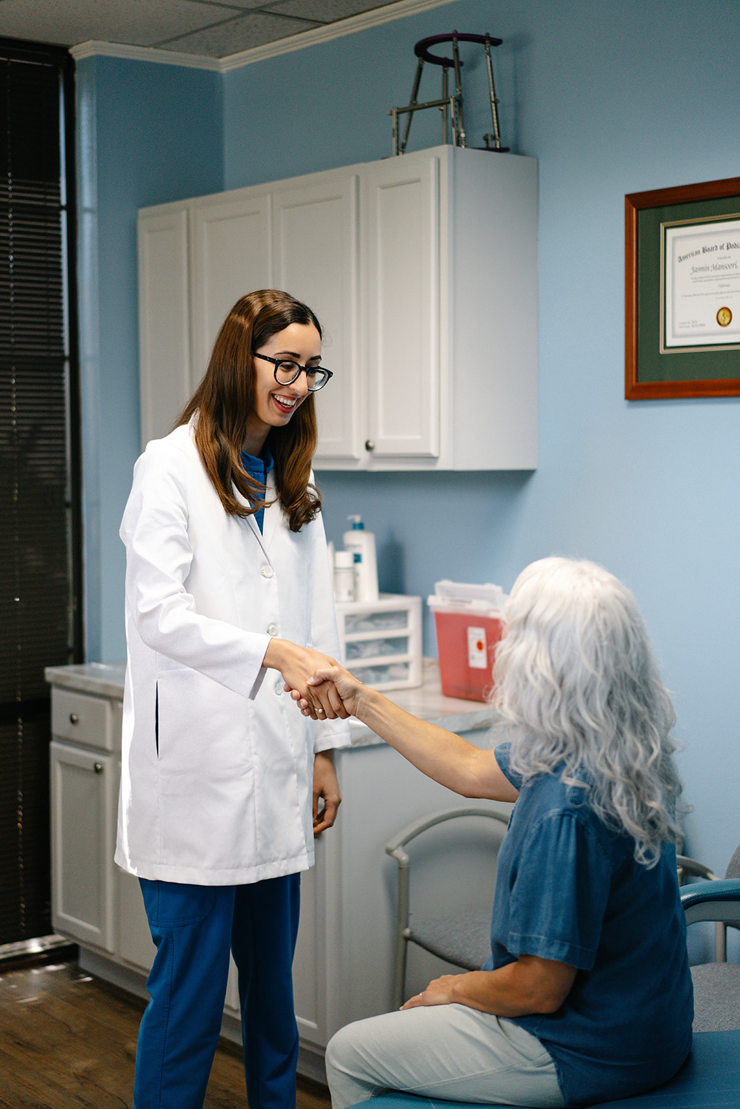 Our team is led by board-certified podiatrist Dr. Jasmin Mansoori, who combines medical expertise with a warm, approachable style of care. Patients receive thoughtful, individualized treatment at every visit.